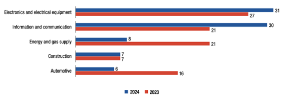 Chart 2: ASEAN – Top five industries by announced greenfield investment, 2023 and 2024 (Billions of dollars)