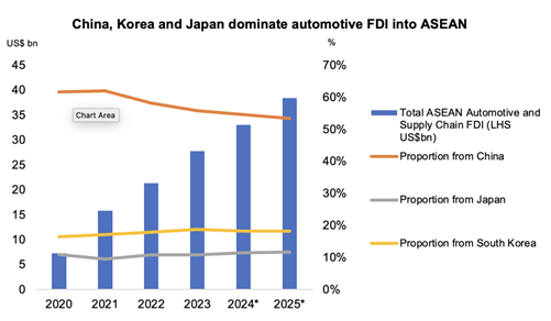 Much of this growth is anchored in Chinese OEM investments. BYD, SAIC, and Great Wall Motors are already operational in Thailand, while BYD’s US$1.3 billion Indonesian plant is slated for 2026, signaling sustained momentum in regional supply chain localization.